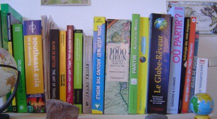 Une partie de notre bibliothèque, qui nous a aidé à préparer le voyage :